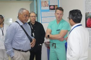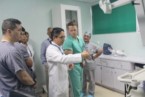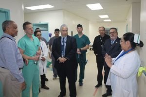 El Director Médico General del HST, Dr. Luis Carlos Bravo, junto al Subdirector Médico, Dr. Rafael Andrade, acompañó en un recorrido guiado a los miembros del equipo norteamericano, Mayor Kyler Maj Kozacek, Capitán David Mounts, Sargento Thimothy James Meade y el Soldado Jaziel Galván y por el MINSA, a la Dra. María Victoria de Crespo, Directora de Provisión de Servicios de Salud y a la Lcda. Lilia Salcedo de Morales, Directora de Asuntos Internacionales y su equipo.